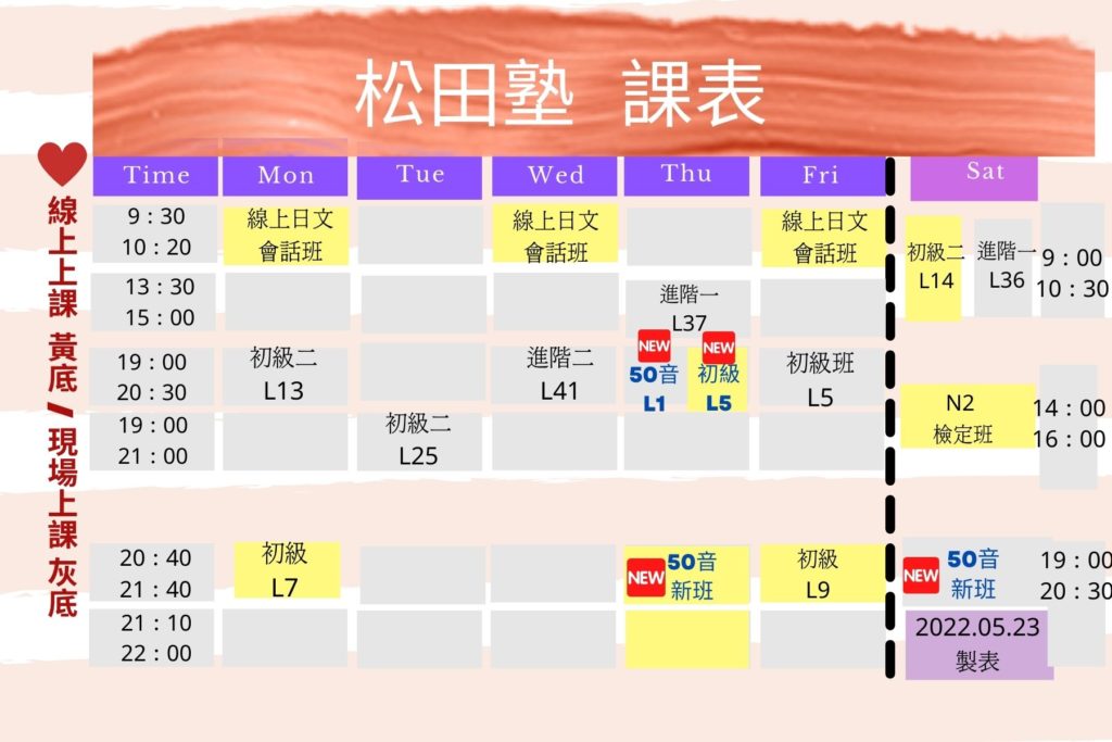 松田日文—五月課表更新!歡迎想上五十音的同學一起來~也有線上防疫課程,請不用擔心哦!