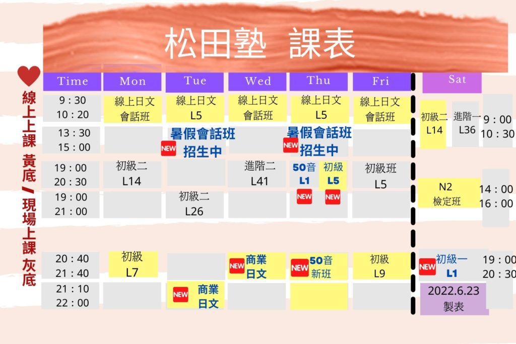 六月課表更新