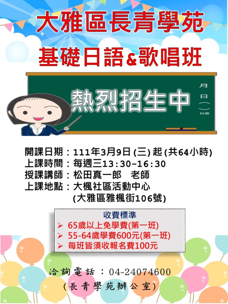 老師的大雅長青學苑招生中,歡迎符合資格的長輩一起來學習!