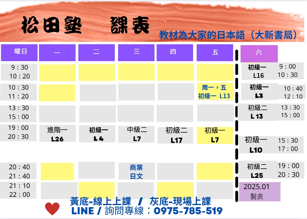 以下所列的日文課程都可以預約試聽喲!試聽為 350元/堂。